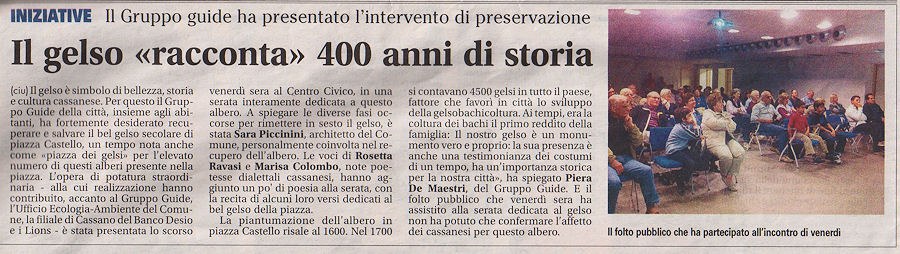 Sarebbe bello se potessimo scrivere una sinfonia, anziché cercare le parole per descrivere l’accoglienza inaspettata e sorprendente che il Gruppo guide Cassano, in rappresentanza della loro città, ha dedicato a noi Buontemponi, Il loro Presidente Cernuschi Angelo e Renato Siesa, oggi Domenica delle Palme c’e l’hanno offerta e noi l’abbiamo goduta, dentro, apprezzando l’amore e l’impegno delle guide che ci hanno accompagnato tra il frusciar dell’acqua del fiume Adda e il profumo dei campi, silenziosi testimoni di una realtà colorata di storia, arte e tradizione. E’ un’incontro felice quello con il ristorante Cantarana che da oltre cent’anni si adagia accanto al ponte sul fiume Adda in un luogo che già forse mille anni fa ha vissuto i traffici fluviali e il crescere graduale dei suoi intorni. La curiosità ci spinge a contattare Angelo Cernuschi, presidente del Gruppo Guide Cassano, dopo poche parole ci sentiamo a casa e accogliamo con entusiasmo l’invito a visitare Cassano d’Adda, Lui non potrà essere presente all’incontro, sarà a Roma in quei giorni ma ci affida a un suo fidato scudiero Renato Siesa, un nome per i milanesi legato al “tiremm innanz”di Amatore Sciesa che differisce solo per una c. L’incontro. In piazza Garibaldi è subito festoso, il Renato ci viene incontro, con cordialità e ci introduce nel mondo delle Guide presentandoci quel meraviglioso sorriso di donna che con grazia e gentilezza ci convince a seguirla al Centro Civico. Il Centro Civico ci accoglie nella sua sala ampia e luminosa, tutti comodi nelle poltroncine per la proiezione del DVD “Cassano d’Adda – Una città e la sua storia” La sorpresa è inimmaginabile perché nessuno di noi avrebbe mai pensato che una città distante soli trentatré chilometri da Milano potesse essere custode di tanti tesori, d’arte di storia e di tradizione. Il lavoro è un incanto e quella voce di mamma che allarga e completa il commento come se parlasse di un figlio dà l’idea di quanto lei ami appartenere al Gruppo Guide, impegnato a far conoscere la loro Cassano. Sorpresa nella sorpresa, il dono del DVD alla Società dei Buontemponi da parte del Gruppo è salutato da un applauso che si ripete quando il nostro Presidente Massimo Santi consegna il gagliardetto del Sole che Ride ai nostri ospiti. Villa Borromeo con la sua meravigliosa cancellata di ferro battuto si apre al nostro sguardo a grandangolo, si fa apprezzare per il suo giardino, le sue statue, la sua fontana mentre la bianca inimitabile facciata barocca, che si staglia sul fondo fa a gara di bellezza con il cielo azzurro. Della storia, dell’arte, dei personaggi che vi hanno soggiornato, degli stili, degli artisti, dei proprietari e di quanto altro ha permesso a questa meravigliosa villa di arrivare ai giorni nostri, con tutto il suo splendore, ce ne parla con dovizia la giovane guida, ci coinvolge con impeto ed entusiasmo e con quell’impegno che le farà dimenticare la sua preziosa bicicletta mentre ci accompagnerà a piedi al punto d’incontro della Santa Messa. Quando entriamo nella cappella dell’Oratorio, della Parrocchia dell’Immacolata e San Zeno, bella è raccolta, apprezziamo ancora una volta l’accoglienza, oggi ci sentiamo principi di Cassano d’Adda, non solo le guide ci hanno trovato il luogo per celebrare il rito ma si uniscono a noi per ricordare quell’atto d’immenso amore, la passione di Cristo letta dalle pagine del Vangelo da padre Francesco Calloni. Commozione e incredulità ci pervadono per un evento , vecchio di oltre duemila anni, che ci ha donato la Santa Comunione, la tradizione della Domenica delle Palme e lo scambio del rametto d’ulivo, simbolo di pace universale. Terminata la Funzione, scendiamo alla Cantarana, un tempo porto dell’Adda e centro di smistamento della posta e di scambi commerciali, sopravissuta alla storia trasformandosi in un ottimo ristorante , una tavola imbandita ci aspetta tutta per i Buontemponi, Padre Francesco si siede accanto al Presidente Massimo offrendoci la più bella sorpresa di Pasqua quella di condividere la nostra mensa. Si cerca di mangiare in fretta perché le guide ci aspettano, per un pomeriggio intenso, lasciamo il ristorante soddisfatti per portarci davanti all’ingresso del Castello Visconteo i cui lavori di restauro, pare, siano stati ultimati proprio per noi, oggi le porte del maniero si aprono per la prima volta ai visitatori, dopo molti anni. Una giovane e frizzante ragazza, del gruppo guide di Cassano, ci coinvolge immediatamente, raccontandoci della storia del Castello, della Corte interna, ci fa notare le schiere degli angeli e dei santi, la Madonna sul trono, le volte a crociera, quelle vele che dividono il soffitto, i medaglioni con i profeti, quante cose si disperdono nella luminosità dell’interno del castello, basta guardarlo per sentirci un gradino più su. Tra le tante cose nella mente rimane impresso il biscione,-La Bissa- degli Sforza e dall’undicesimo secolo emblema dei Visconti, intanto fuori le mura, guardando da un balcone lo sguardo scivola sulla Muzza e fa sognare, mentre l’Adda si spacca a delta dando origine ai suoi canali. Il desiderio di rimanere ancora nel Castello si stempera davanti al mistero della vita, un grande gelso, un albero, di oltre 800 anni aggrovigliato su se stesso, resiste al tempo, anche con l’aiuto dell’uomo che ne ha puntellato i rami, atto di riconoscimento per chi ha sfamato chissà quanti bachi da seta. Cassano d’Adda non finisce di stupirci, entrando nella Chiesetta di San Dionigi scopriamo un tesoro che mai avremmo visto se non con le guide di Cassano, il Maestro pittore, appartenente al gruppo, ci mostra gli affreschi dei fiamminghini e di Vincenzo Cinisello, tutti luminosi, espressivi e belli contornati da stucchi, di ognun d’essi ci parla di tecniche, atte a dar luce e colore, ci parla di calce di sabbia di polveri di marmo, elementi semplici che l’ingegno dell’uomo utilizza p